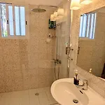 Denne 80 m^2 store ferielejlighed har udsigt over haven og værelser med et opholdsområde, tv og et fladskærms TV med satellitkanaler. Nogle enheder indeholder separat toilet og en bruser.